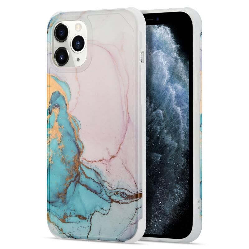 Θήκη κινητού τηλεφώνου για iPhone 12 Pro Max, αντιθραυστική, με σχέδιο ρευστού χρυσού μαρμάρου IMD, για τις τέσσερις γωνίες (Πορτοκαλί Μπλε LD4)