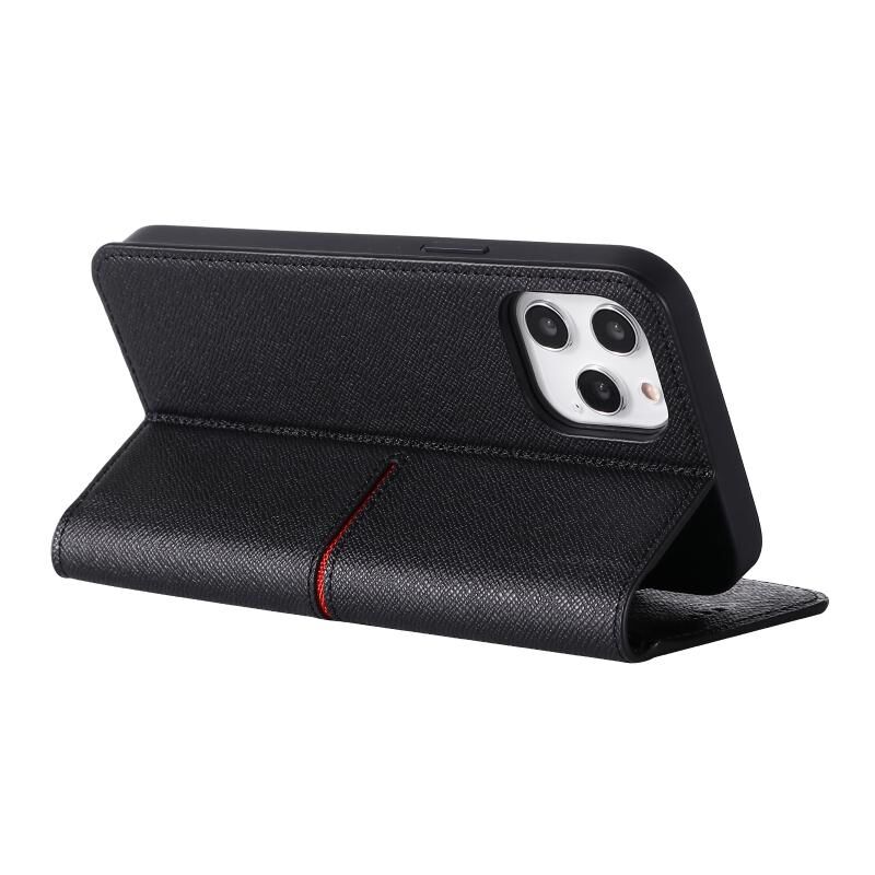 Θήκη προστασίας οριζόντιας αναδίπλωσης από δέρμα κορυφαίας ποιότητας GEBEI για iPhone 12 Pro Max με βάση & υποδοχές καρτών & πορτοφόλι & κορνίζα φωτογραφιών (Μαύρο) (GEBEI)