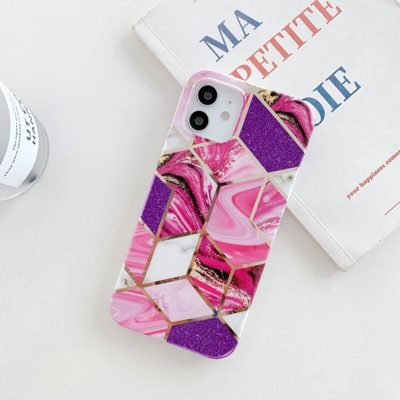 Θήκη τηλεφώνου TPU με ηλεκτρολυτική μαρμάρινη όψη και γκλίτερ για iPhone 12 Pro Max (Ροζ)