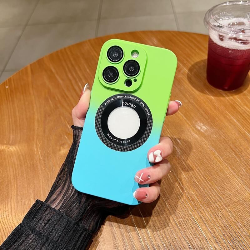 For iPhone 12 Pro Max Gradient Skin Feel MagSafe Magnetic Phone Case(Green + Sky Blue)