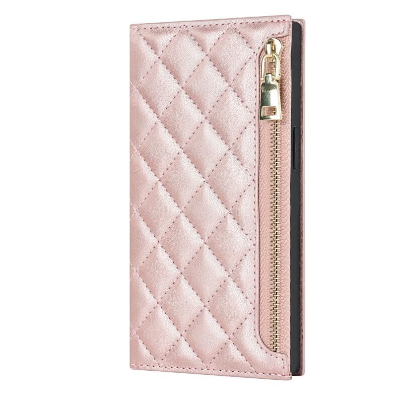 Θήκη τηλεφώνου δερμάτινη με φερμουάρ και λουρί με υφή πλέγματος για iPhone 12 Pro Max (Χρυσορόδινο)