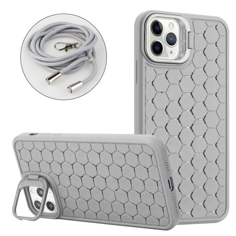 Θήκη τηλεφώνου TPU για iPhone 12 Pro Max με σχέδιο κυψελωτού και λουρί (Πράσινο)