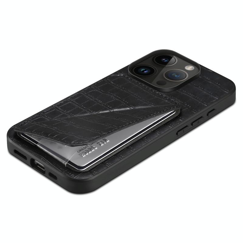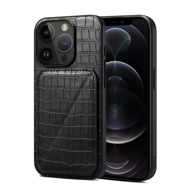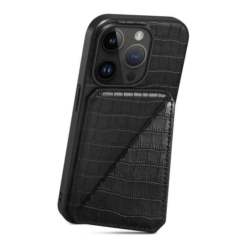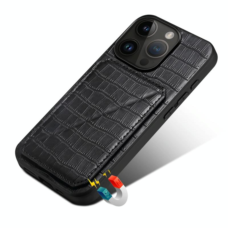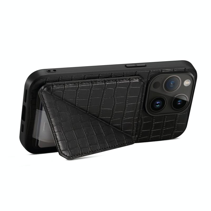Για iPhone 12 Pro Max Θήκη με Δερμάτινη Όψη Κροκόδειλου και Στήριξη (Μαύρο)
