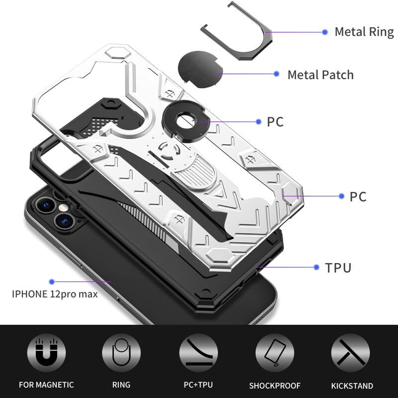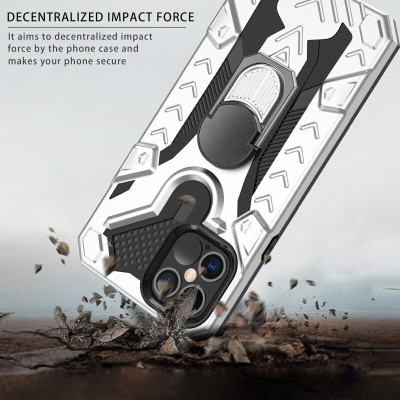 Θήκη κινητού τηλεφώνου 2 σε 1 PC + TPU για iPhone 12 Pro Max Iron Knight Series με δακτύλιο στήριξης (Γκρι)