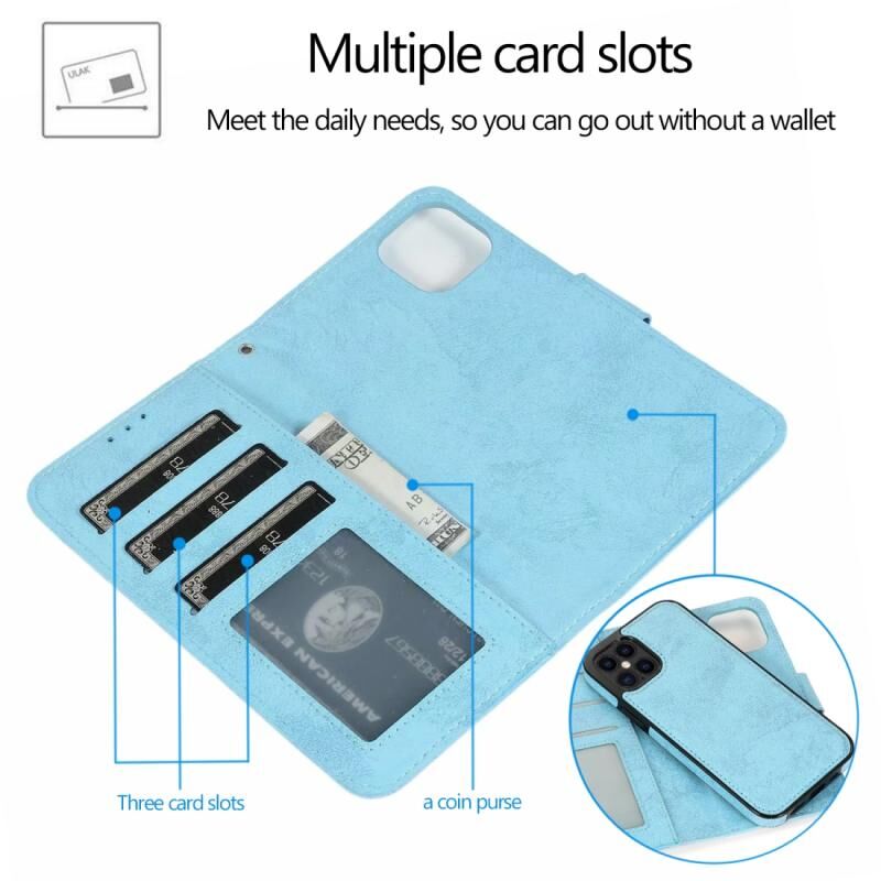 4. Πολυλειτουργικός σχεδιασμός, θήκες για κάρτες, πορτοφόλι, βάση στήριξης, αποσπώμενη μαγνητική προστατευτική πίσω θήκη.