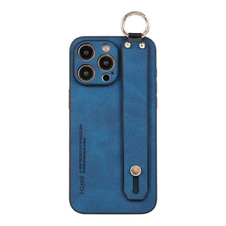 For iPhone 12 Pro Max Lambskin Wristband Holder Phone Case(Blue)