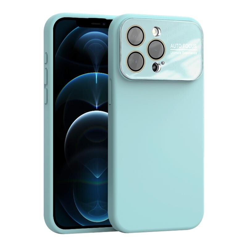 Μεμβράνη φακού ακρυλικού μεγάλου παραθύρου για iPhone 12 Pro Max + Θήκη κινητού τηλεφώνου με πλήρη κάλυψη από υγρή σιλικόνη (Σκούρο Μωβ)