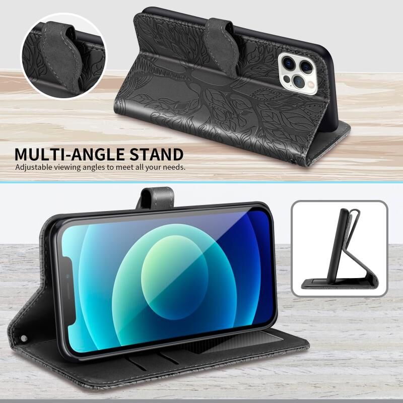 Θήκη για iPhone 12 Pro Max, Δερμάτινη οριζόντια θήκη με σχέδιο ανάγλυφου δέντρου, με βάση, θήκη για κάρτες, πορτοφόλι, κορνίζα φωτογραφιών & λουρί (Κόκκινο)