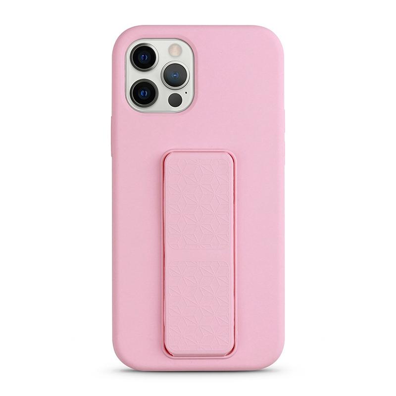 For iPhone 12 Pro Max Liquid Silicone Holder Phone Case(Pink)