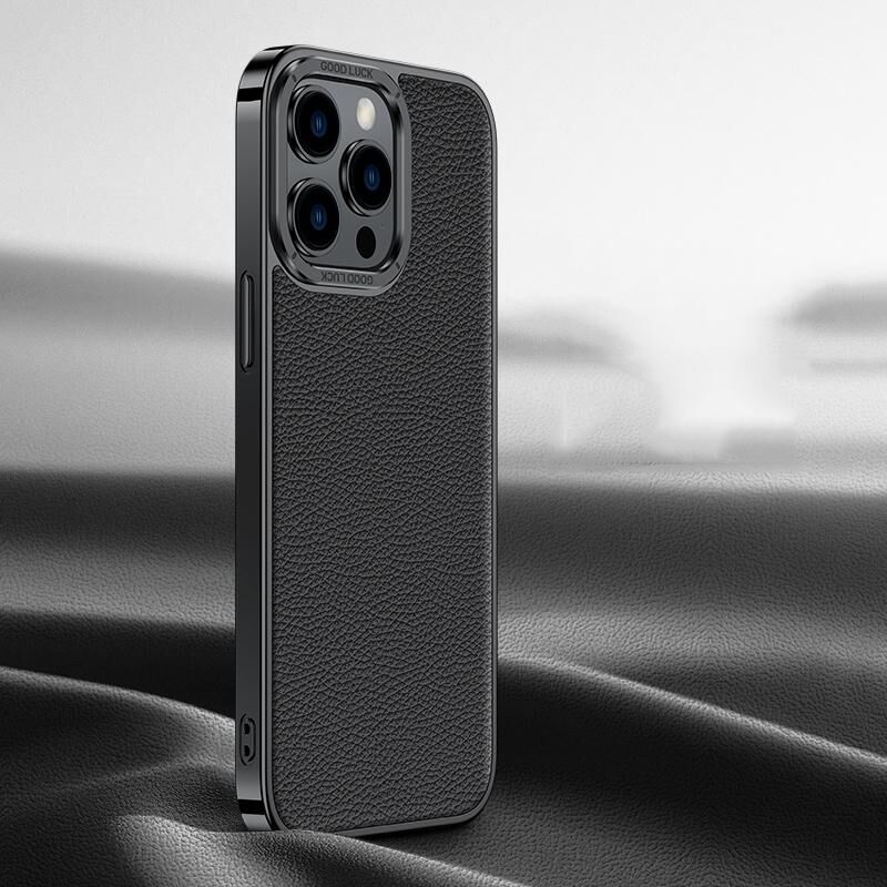 For iPhone 12 Pro Max Litchi Texture Genuine Leather Phone Case(Black)