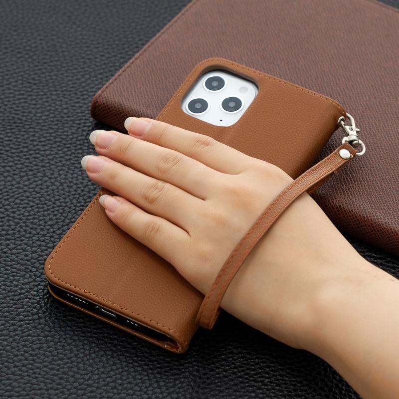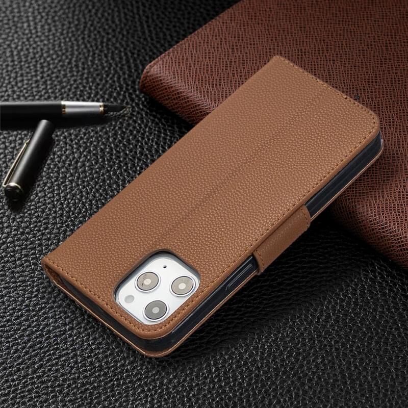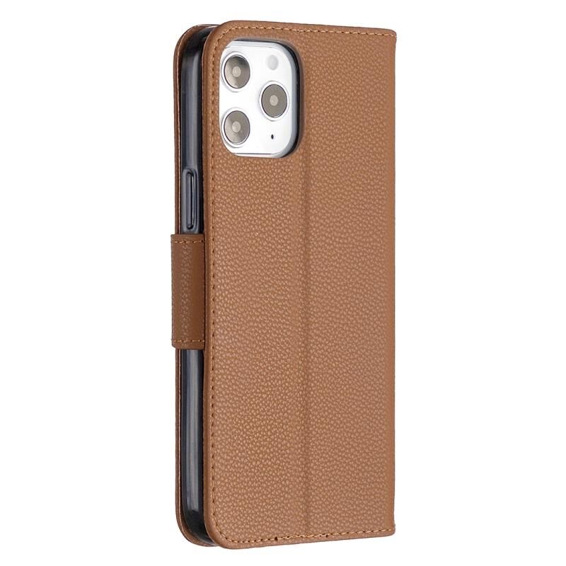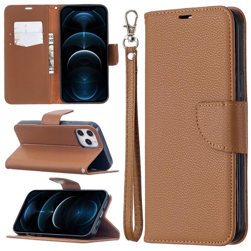 For iPhone 12 Pro Max Litchi Texture Pure Color Horizontal Flip Leather Case with Holder & Card Slots & Wallet & Lanyard(Brown)