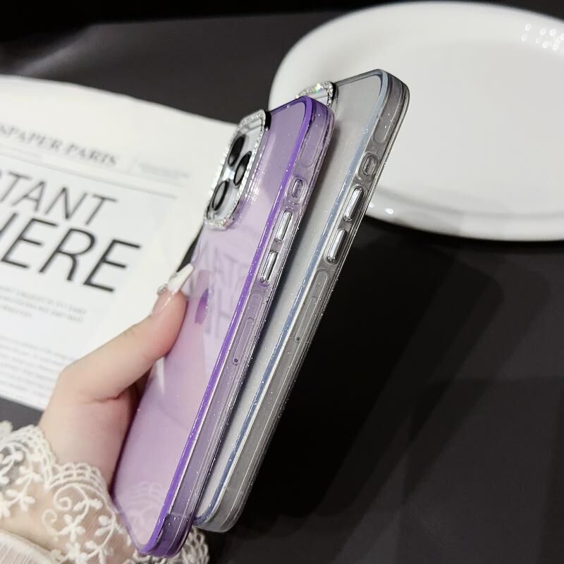 Θήκη τηλεφώνου IMD Acrylic για iPhone 12 Pro Max με σχέδιο καρδιών και διαμαντένια στεφάνη φακού (Ροζ)