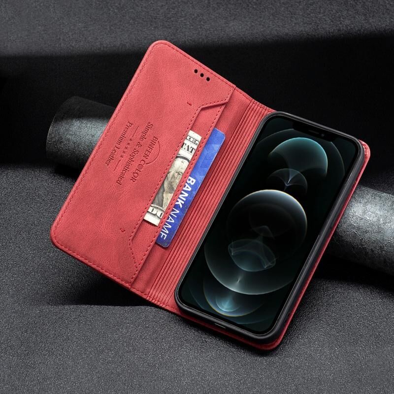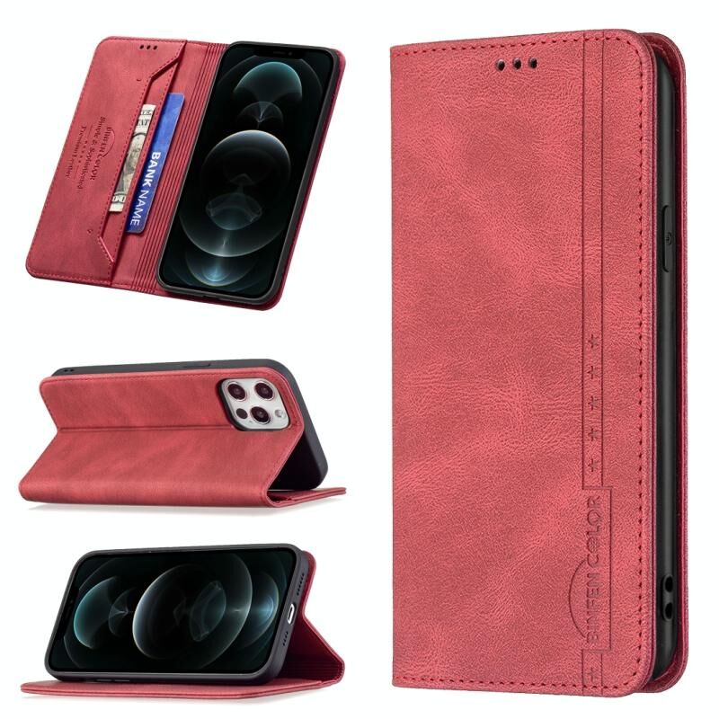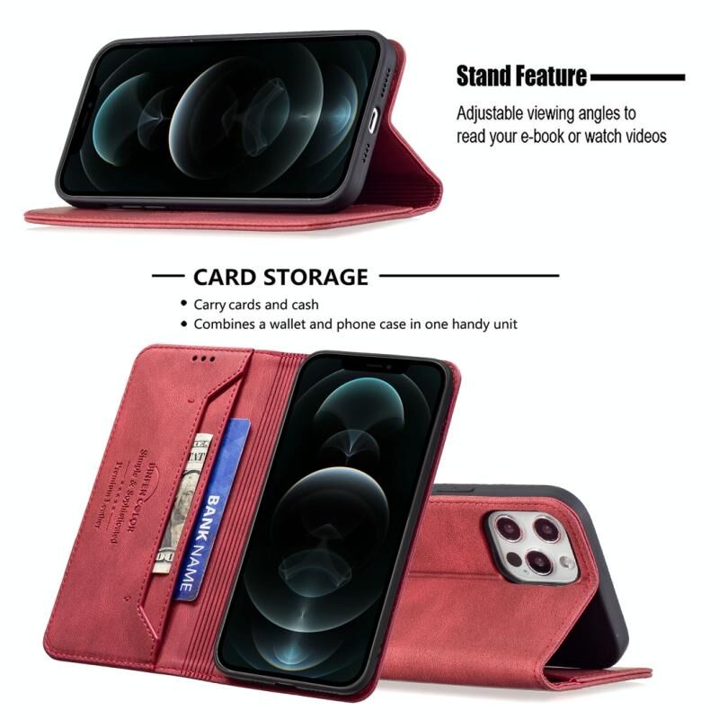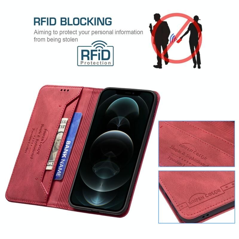 Θήκη δέρματος με μαγνητική προστασία RFID και αντι-κλοπής για iPhone 12 Pro Max με βάση & υποδοχές καρτών & πορτοφόλι (Κόκκινο)