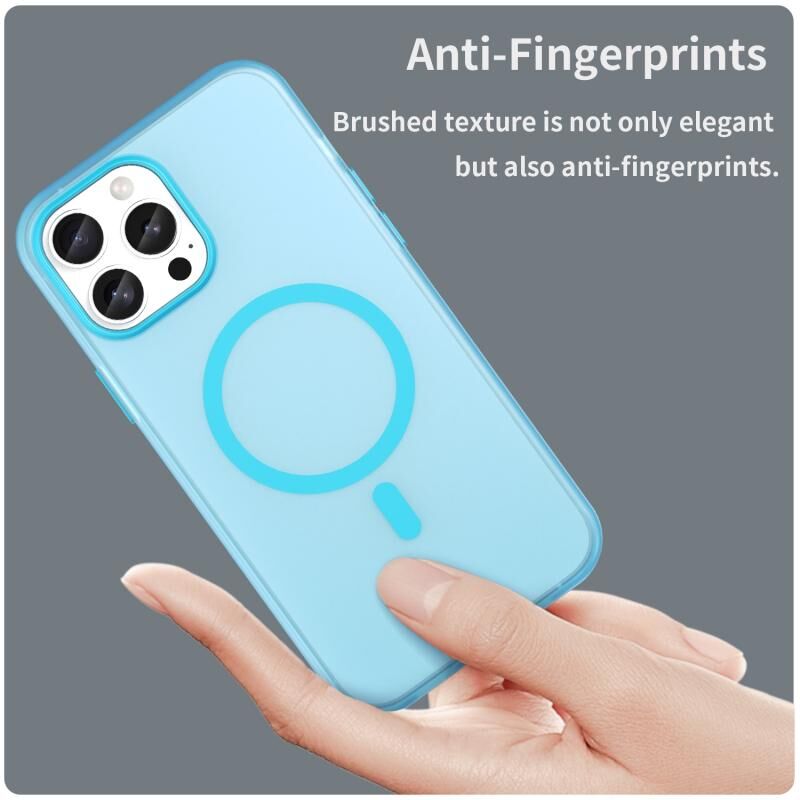 For iPhone 12 Pro Max MagSafe Frosted Translucent TPU + PC Full Coverage Phone Case(Blue)