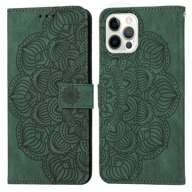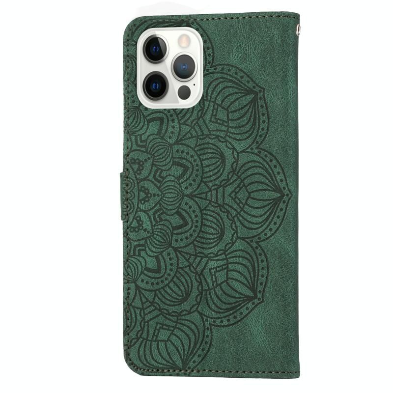 For iPhone 12 Pro Max Mandala Embossed Flip Leather Phone Case(Green)