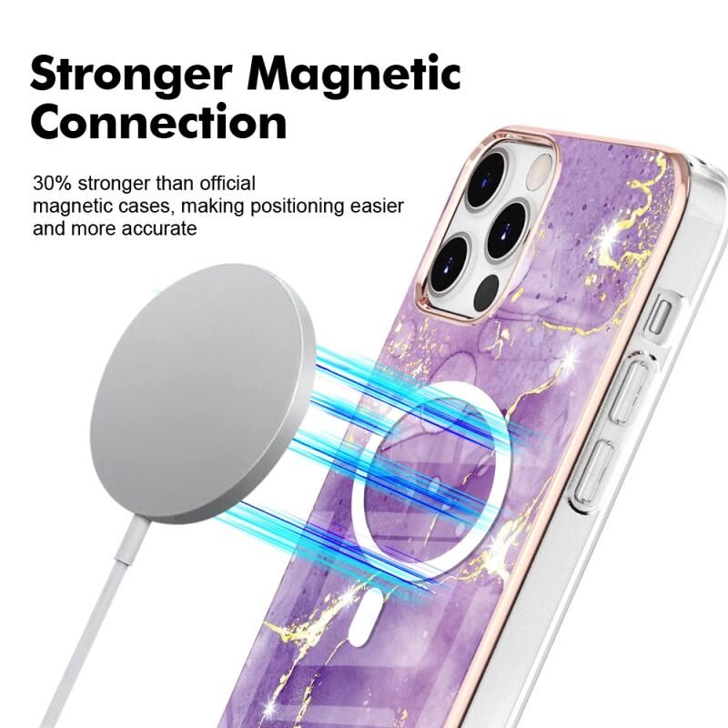 Θήκη τηλεφώνου για iPhone 12 Pro Max με σχέδιο μάρμαρου, διπλής όψης IMD, συμβατή με MagSafe, από TPU (Μωβ 002)