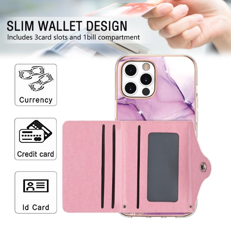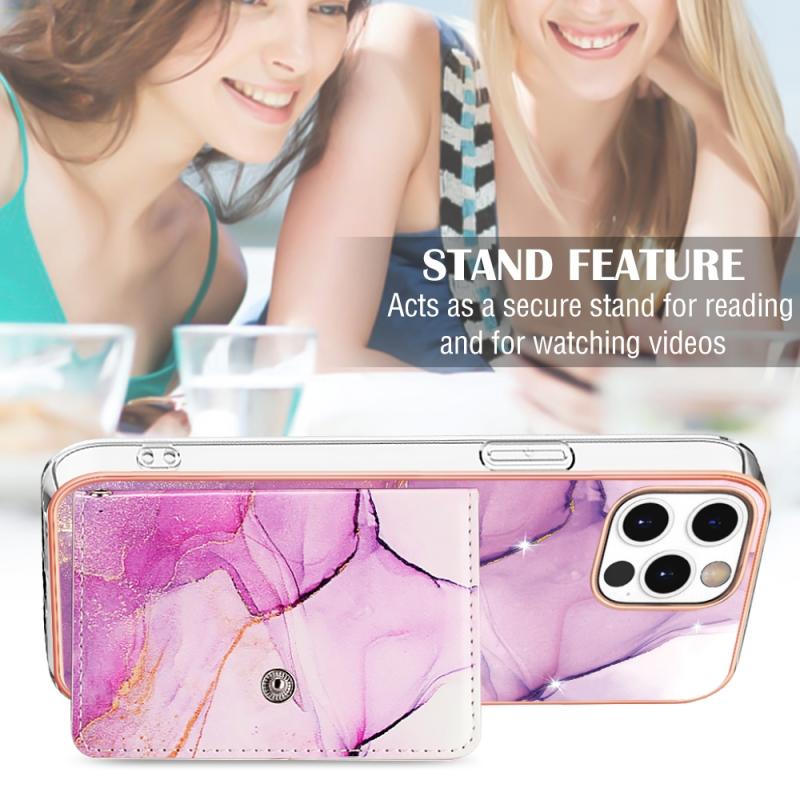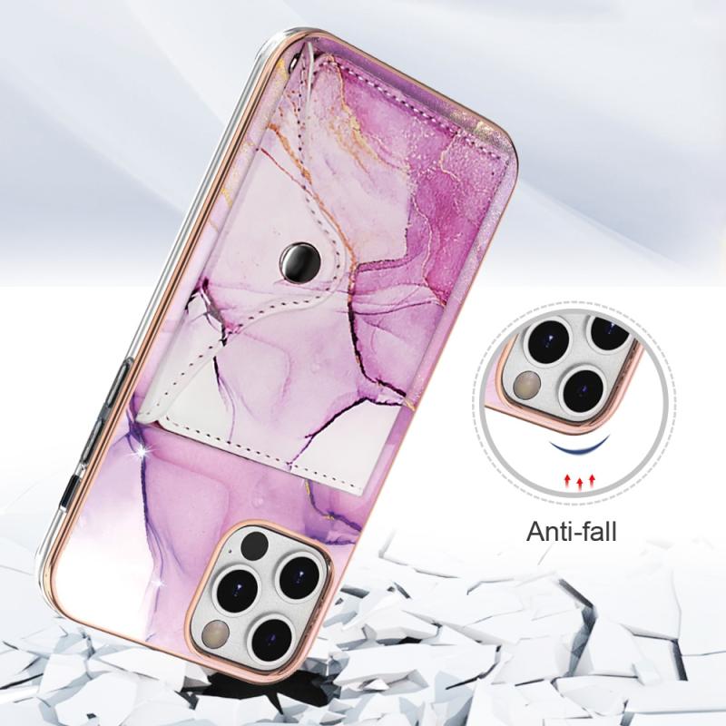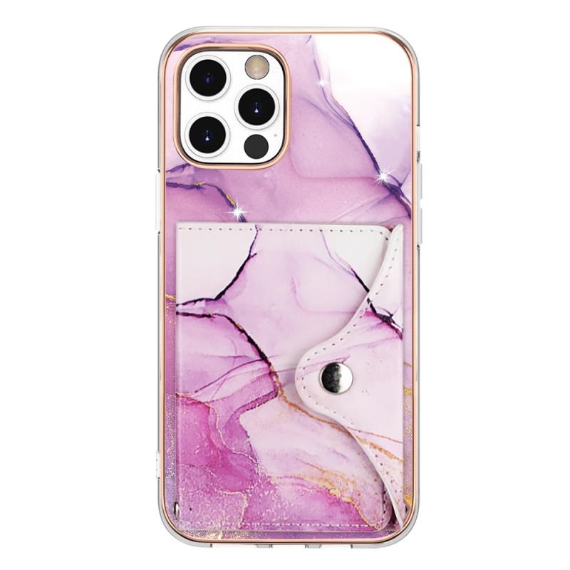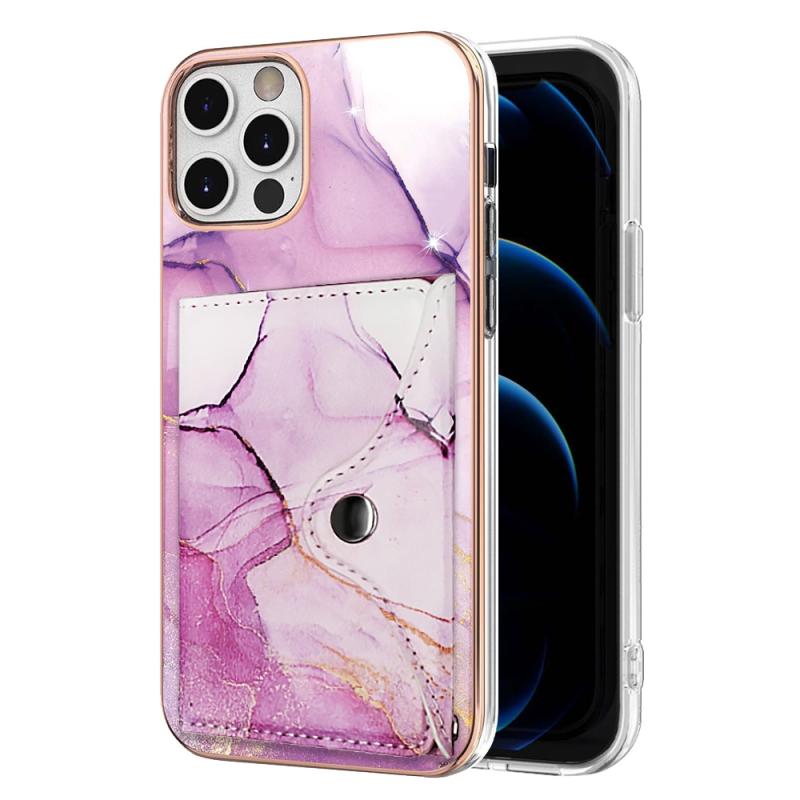 For iPhone 12 Pro Max Marble Pattern IMD Card Slot Phone Case(Pink Purple Gold)