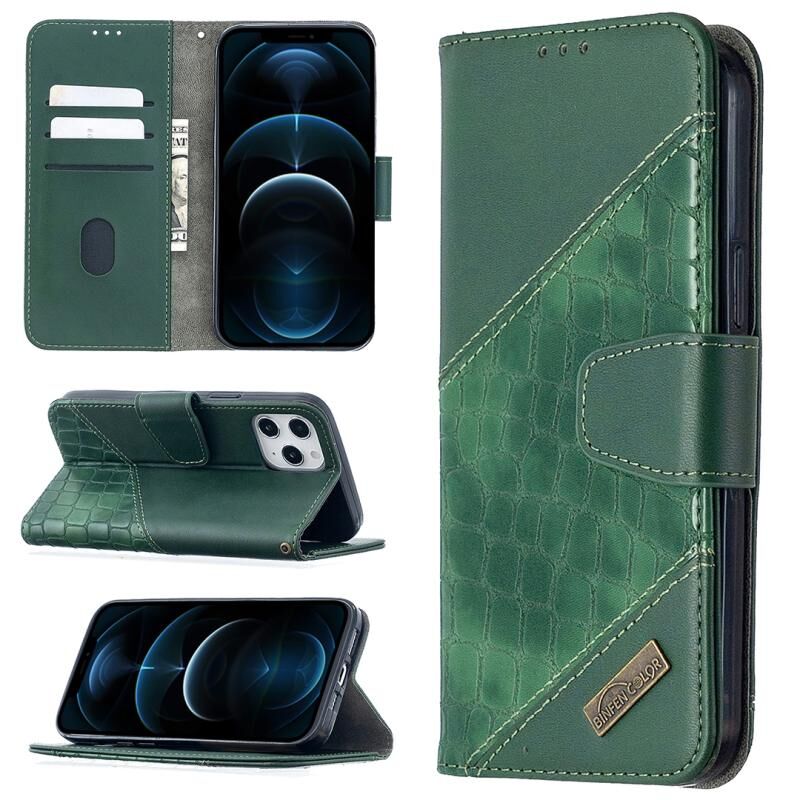 Θήκη για iPhone 12 Pro Max, οριζόντια, από δερματίνη PU με υφή κροκόδειλου, σε ταιριαστό χρώμα, με πορτοφόλι, βάση & θήκες για κάρτες (Μαύρο)