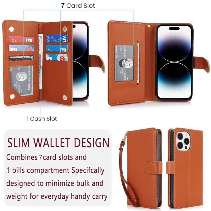 5. Λειτουργία πολλαπλών καρτών και πορτοφολιού: Υποδοχή καρτών και τσέπη πορτοφολιού με φερμουάρ και θήκη για μετρητά μπορούν να αποθηκεύσουν τις πιστωτικές σας κάρτες, μετρητά ή μικρά χαρτονομίσματα που χρειάζεστε καθημερινά.