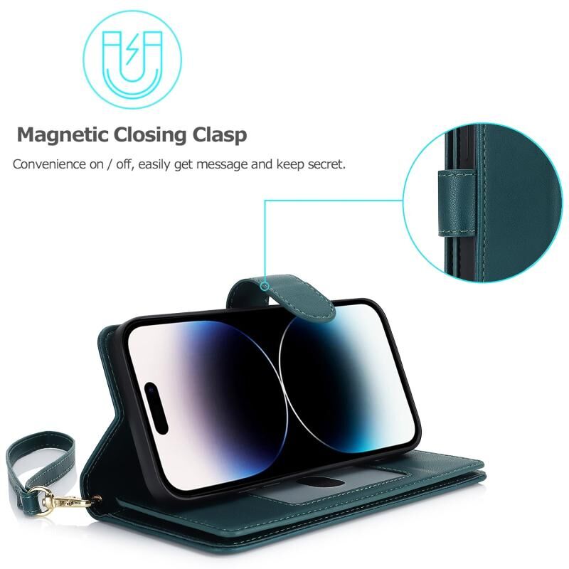 5. Λειτουργία πολλαπλών καρτών και πορτοφολιού: Υποδοχή καρτών και τσέπη πορτοφολιού με φερμουάρ και θήκη για μετρητά μπορούν να αποθηκεύσουν τις πιστωτικές σας κάρτες, μετρητά ή μικρά χαρτονομίσματα που χρειάζεστε καθημερινά.