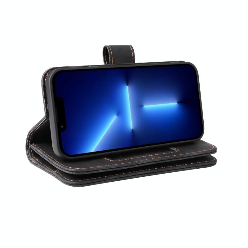 Θήκη τηλεφώνου από δέρμα τύπου flip με πολλαπλές υποδοχές καρτών και φερμουάρ για iPhone 12 Pro Max (Μαύρο)