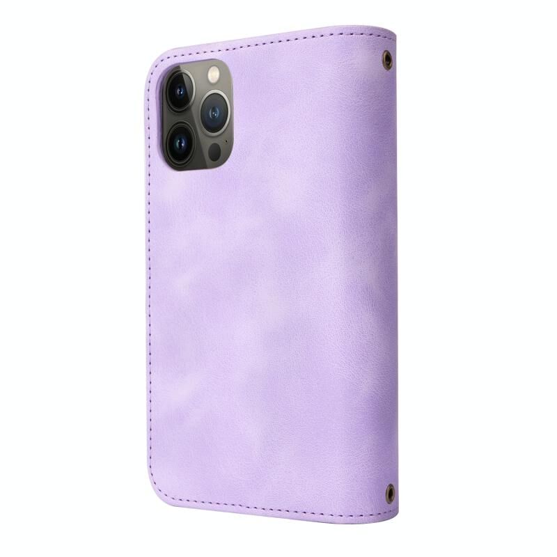 Θήκη τηλεφώνου από δέρμα τύπου flip με πολλαπλές υποδοχές καρτών και φερμουάρ για iPhone 12 Pro Max (Μαύρο)