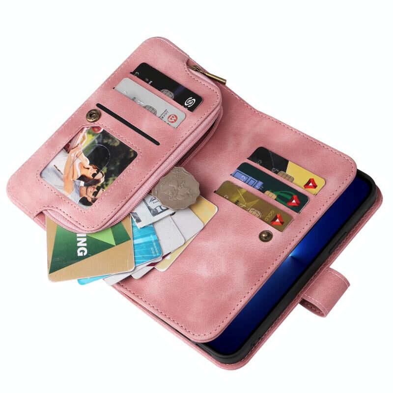 Θήκη τηλεφώνου από δέρμα τύπου flip με πολλαπλές υποδοχές καρτών και φερμουάρ για iPhone 12 Pro Max (Μαύρο)