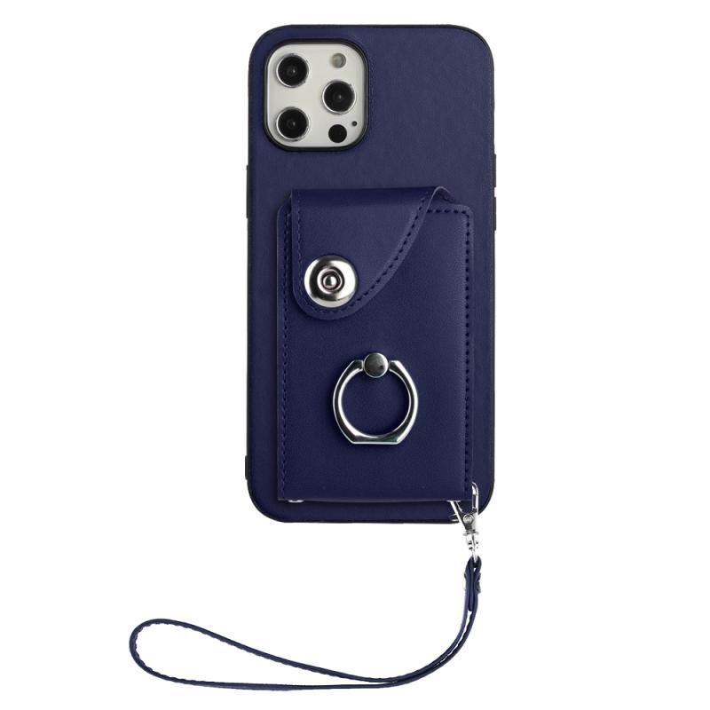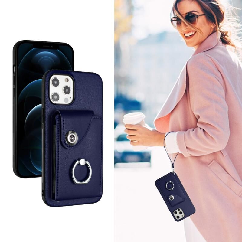 Θήκη κινητού τηλεφώνου για iPhone 12 Pro Max με κάρτα οργάνωσης, δακτύλιο στήριξης και λουρί από PU (Μπλε)