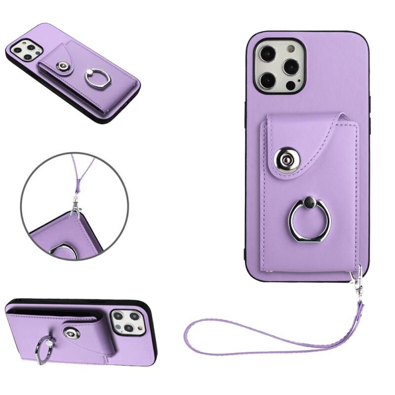 Θήκη κινητού τηλεφώνου για iPhone 12 Pro Max με κάρτα οργάνωσης, δακτύλιο στήριξης και λουρί από PU (Μωβ)