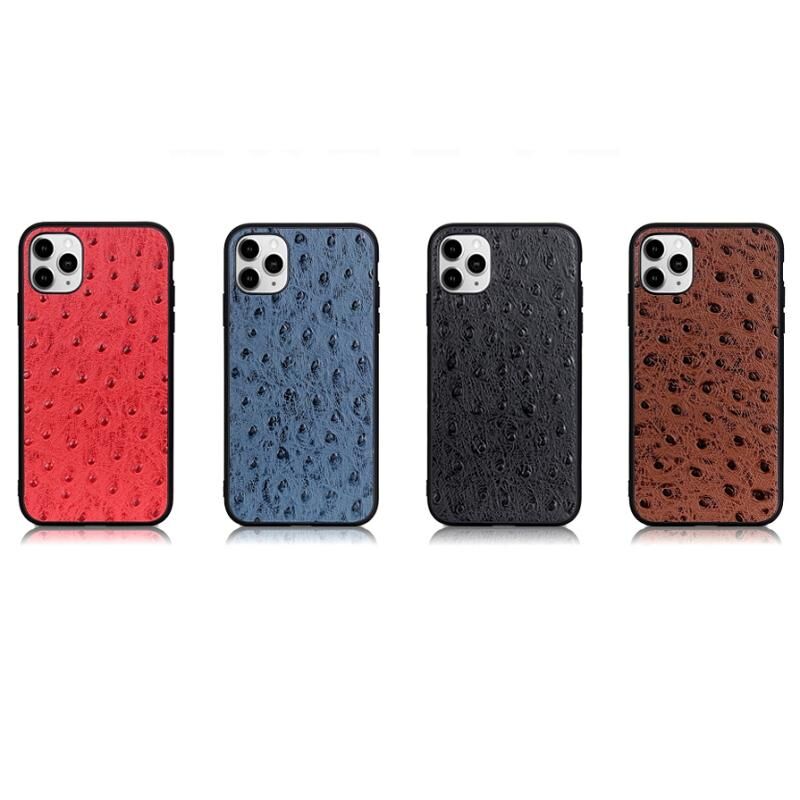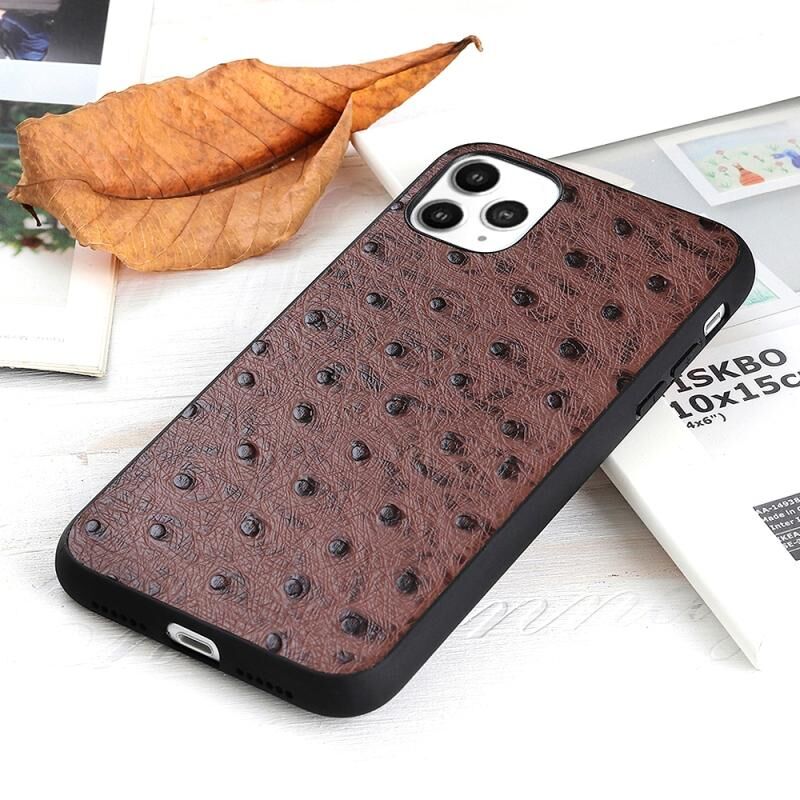 Θήκη προστασίας από γνήσιο δέρμα με υφή στρουθοκάμπου για iPhone 12 Pro Max (Μαύρο)