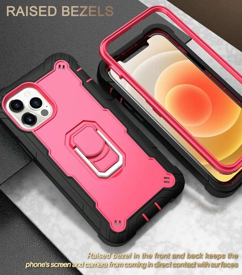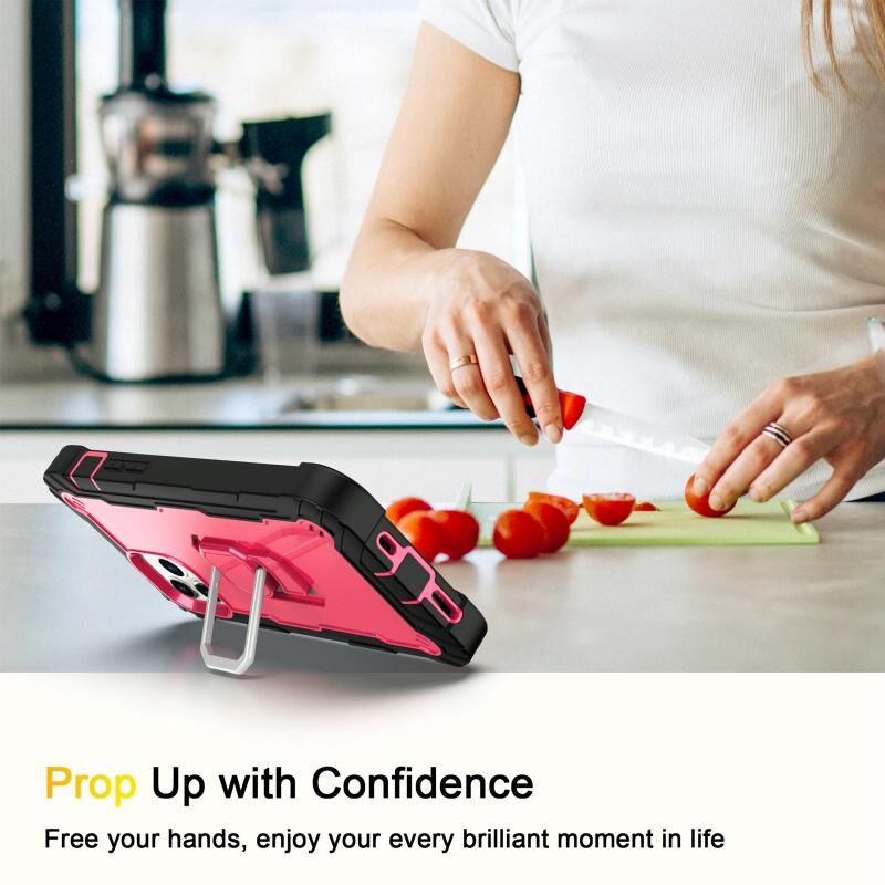 Θήκη προστασίας 3 στρωμάτων για iPhone 12 Pro Max από πολυανθρακικό + καουτσούκ, ανθεκτική σε κρούσεις με περιστρεφόμενη βάση (Μέντα Πράσινο + Μπλε)