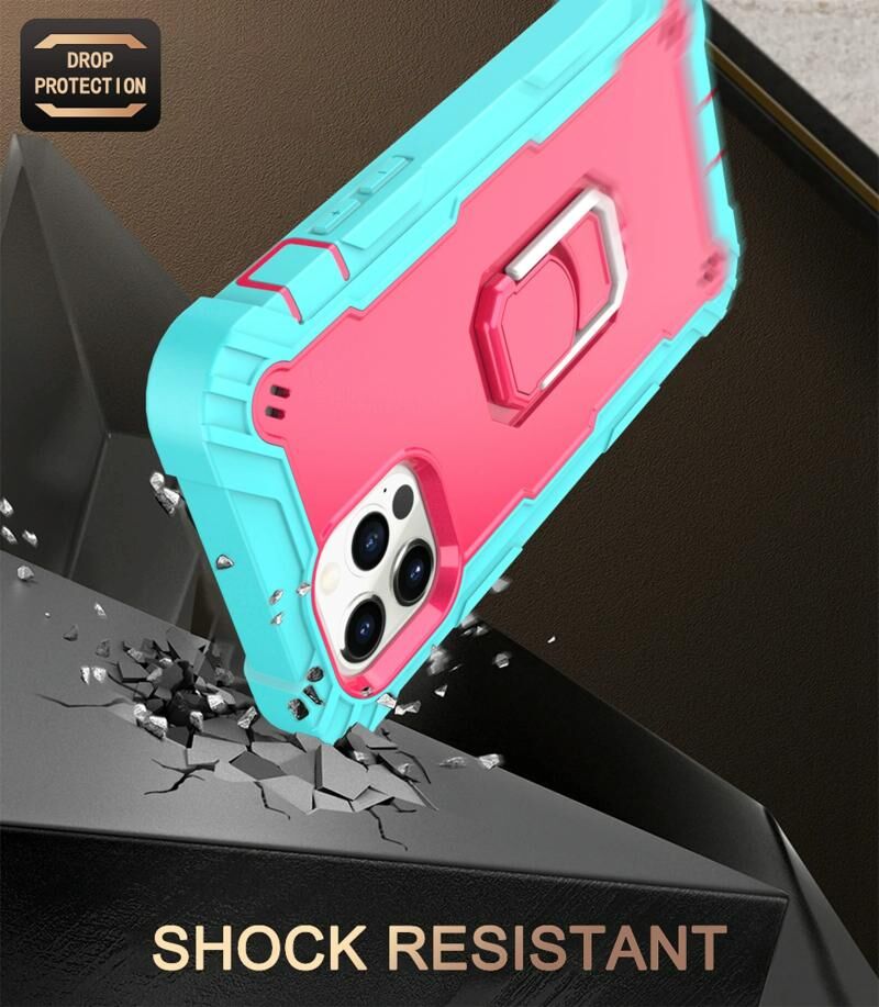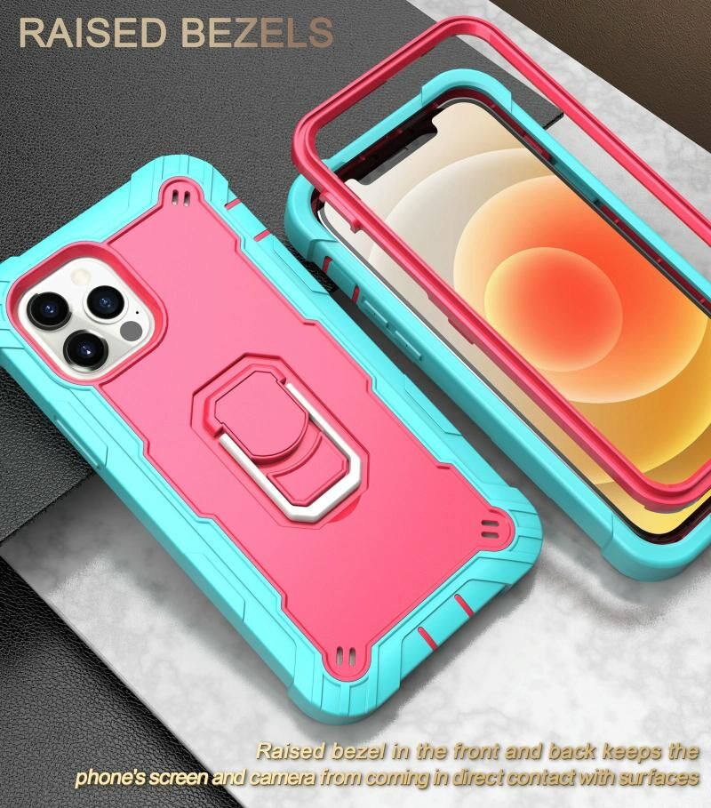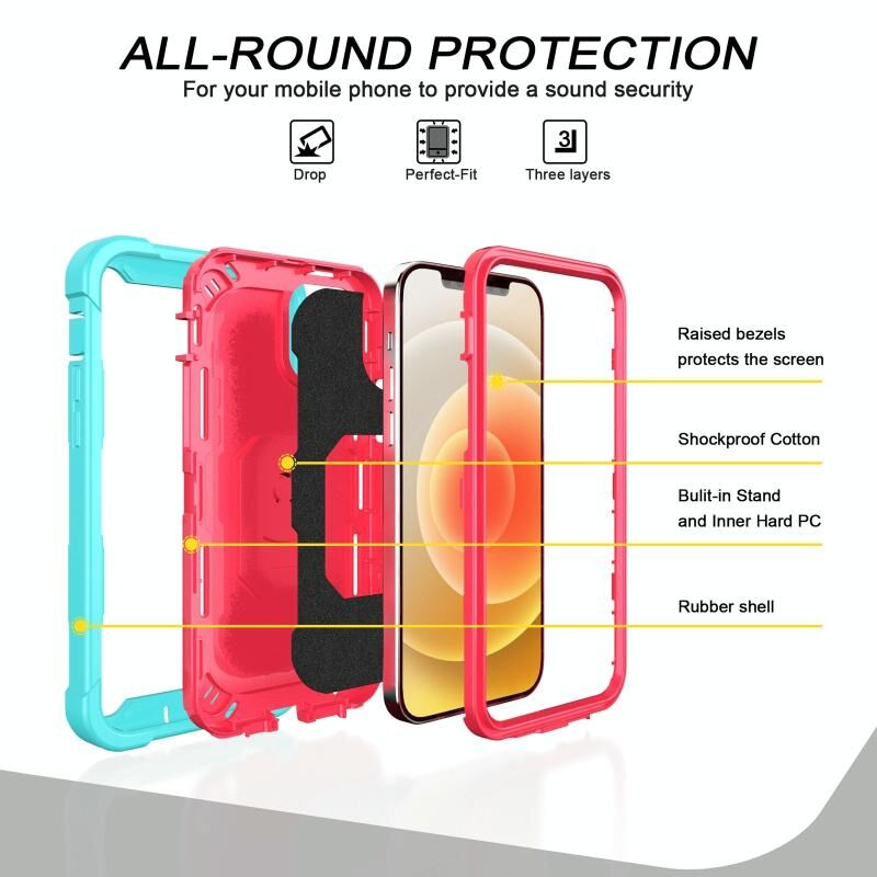 Θήκη προστασίας 3 στρωμάτων για iPhone 12 Pro Max από πολυανθρακικό + καουτσούκ, ανθεκτική σε κρούσεις με περιστρεφόμενη βάση (Μέντα Πράσινο + Μπλε)