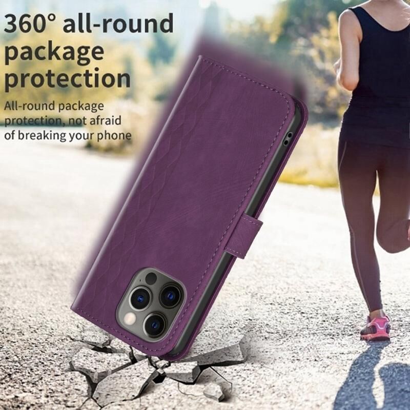 Θήκη τηλεφώνου από ανάγλυφο δέρμα καρό για iPhone 12 Pro Max (Μωβ)