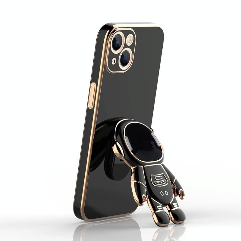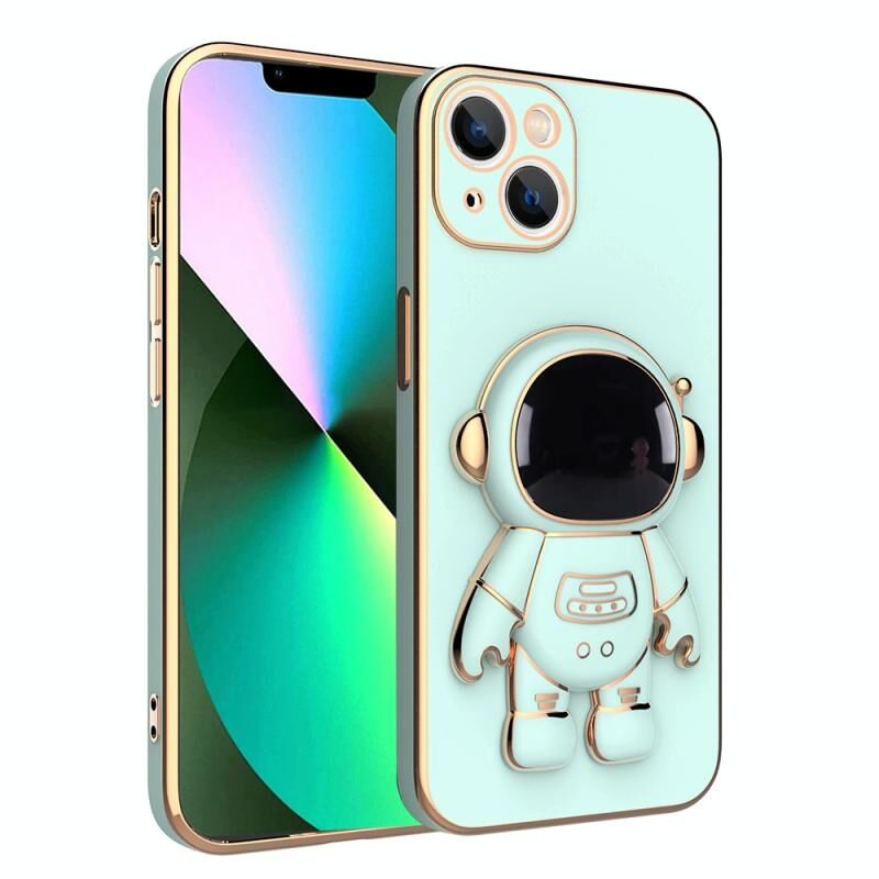 For iPhone 12 Pro Max Plating Astronaut Holder Phone Case(Matcha Green)