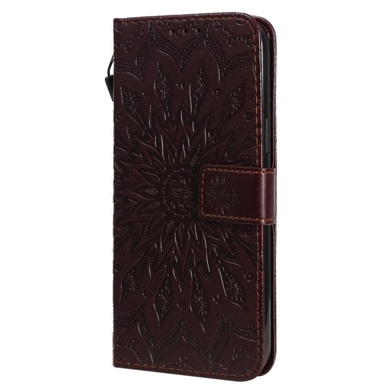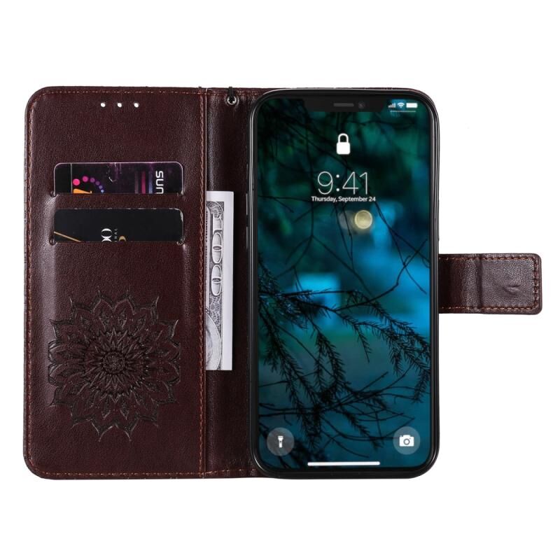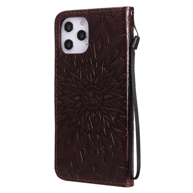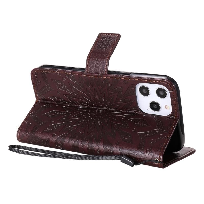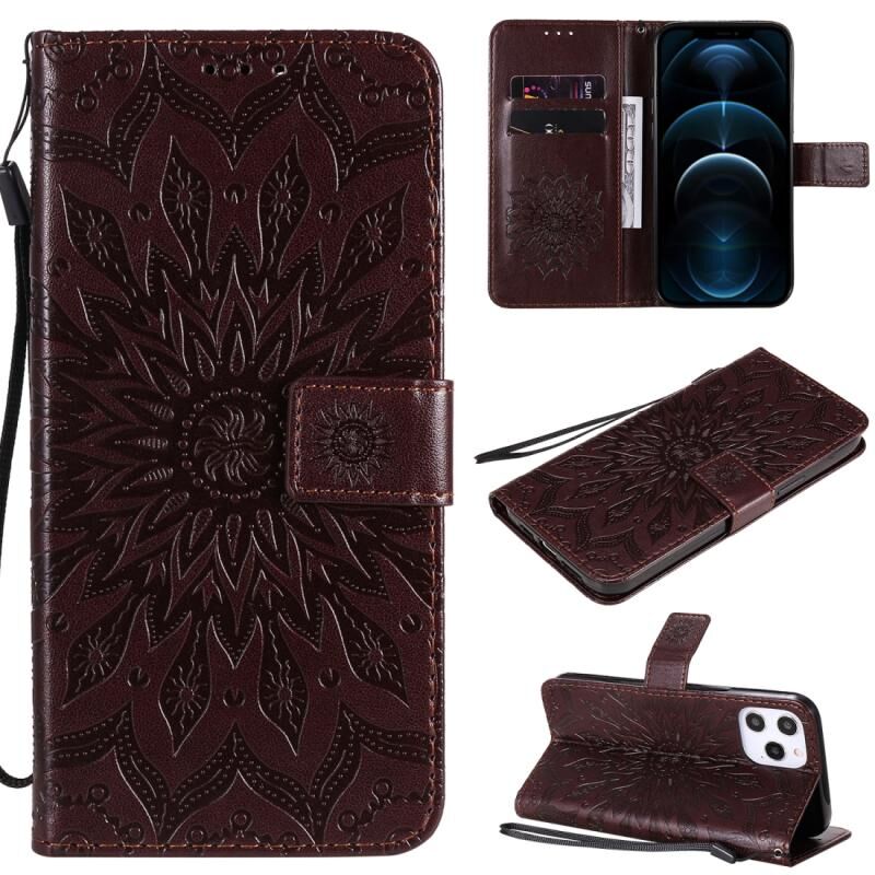 Θήκη για iPhone 12 Pro Max με εκτύπωση σε ανάγλυφο σχέδιο ηλίανθου, οριζόντια, από δερματίνη PU με θήκη & υποδοχές για κάρτες & πορτοφόλι & κορδόνι (Μπλε)