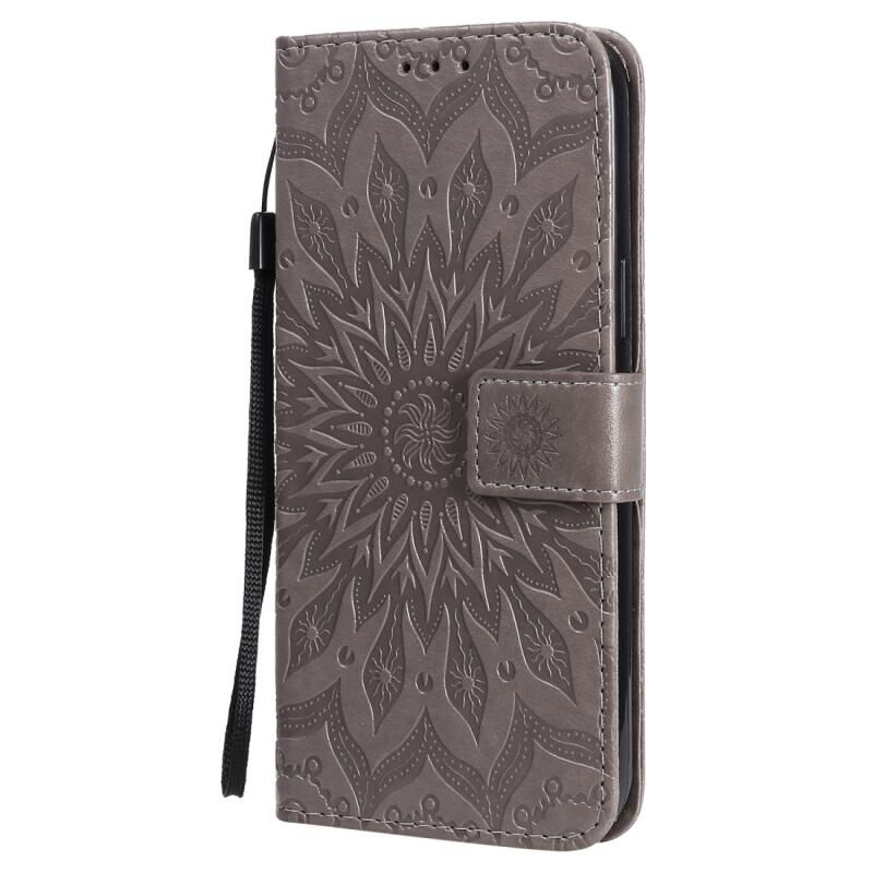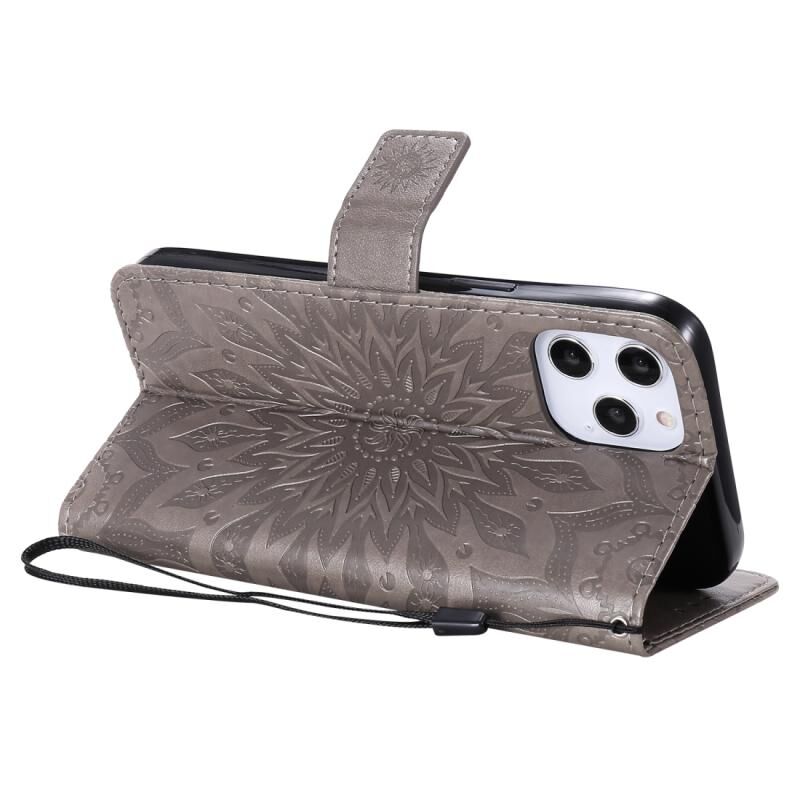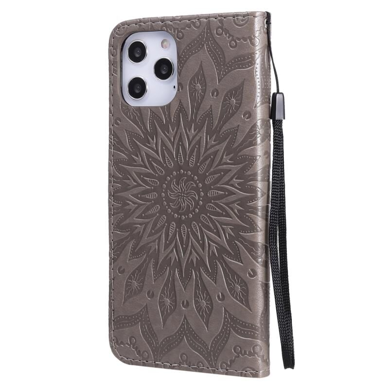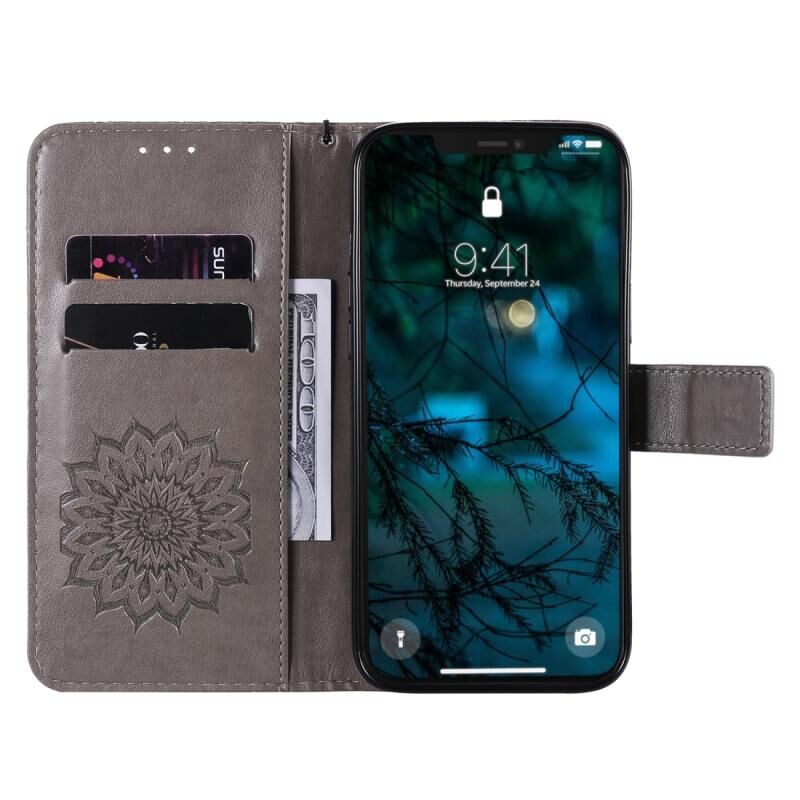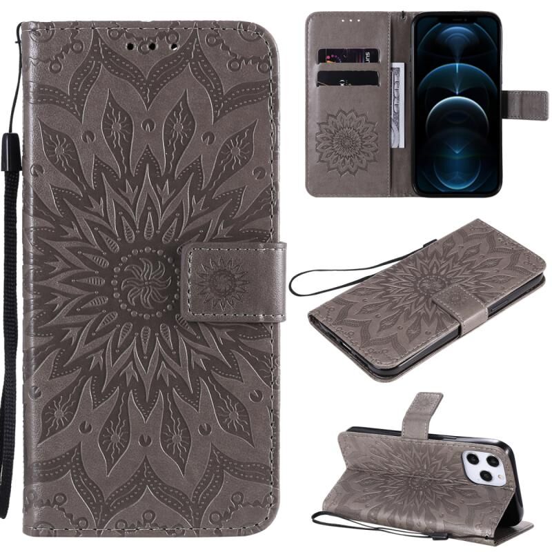 Θήκη για iPhone 12 Pro Max με εκτύπωση σε ανάγλυφο σχέδιο ηλίανθου, οριζόντια, από δερματίνη PU με θήκη & υποδοχές για κάρτες & πορτοφόλι & κορδόνι (Μπλε)