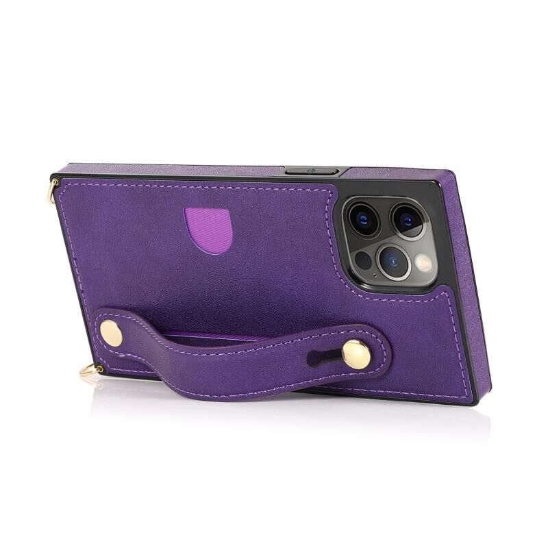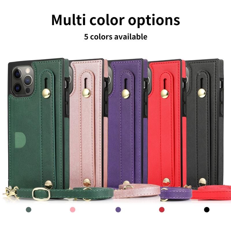 Θήκη προστασίας για iPhone 12 Pro Max από PU+TPU, ανθεκτική σε κρούσεις, με λουρί ώμου, βάση στήριξης, θήκη για κάρτες και λουρί καρπού (Χρυσορόδινο)