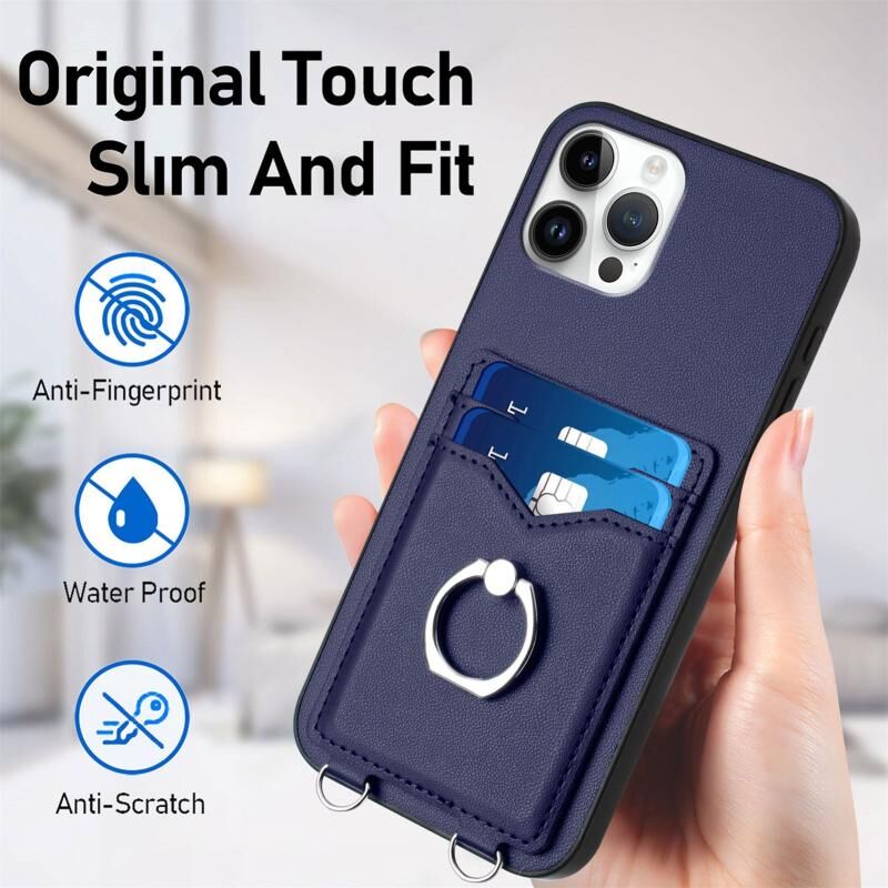 Θήκη τηλεφώνου για iPhone 12 Pro Max R20, με κορδόνι, δακτύλιο και θήκη για κάρτες (Ροζ)