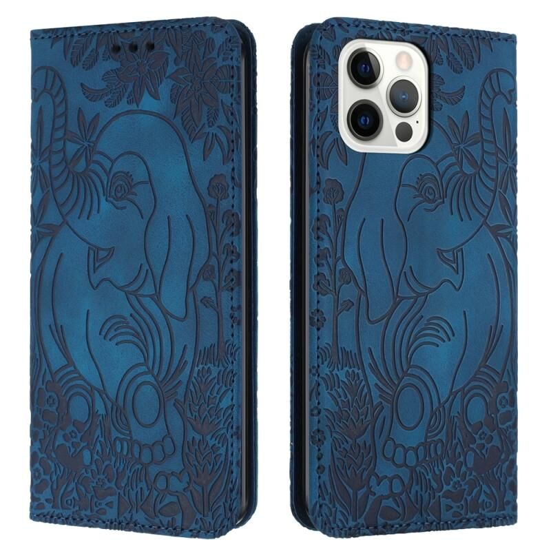 For iPhone 12 Pro Max Retro Elephant Embossed Leather Phone Case(Blue)