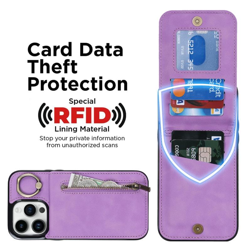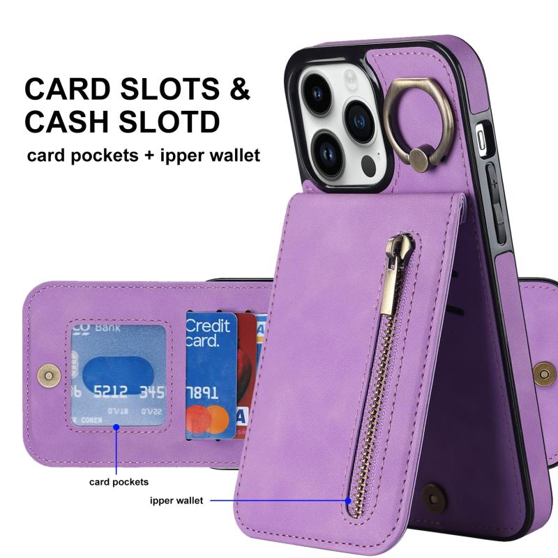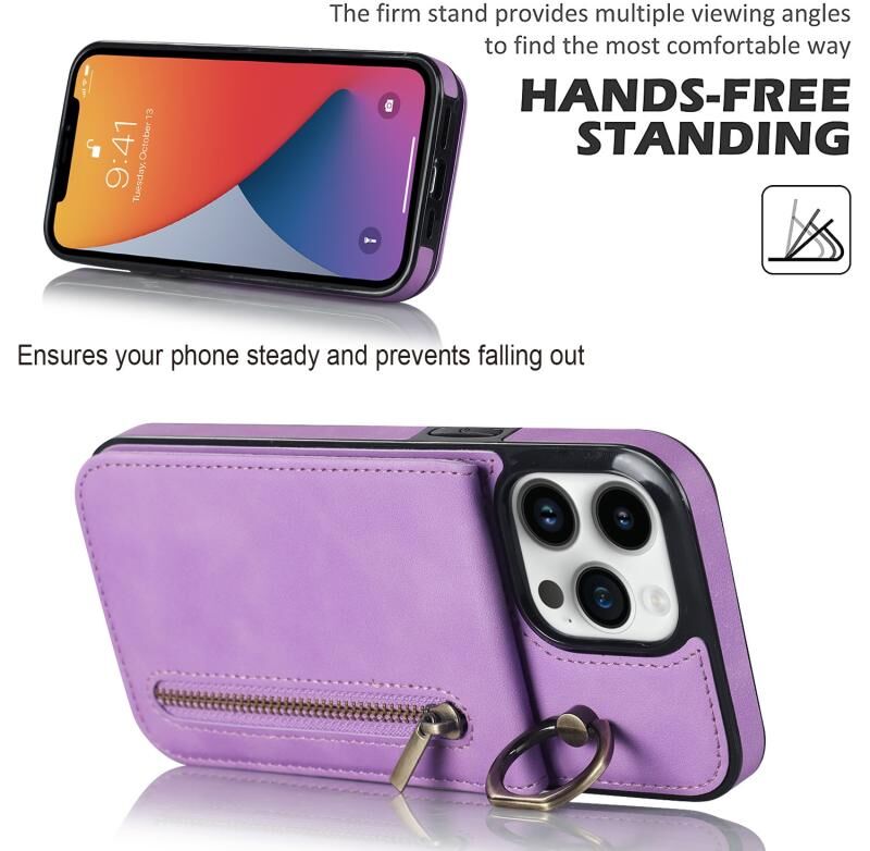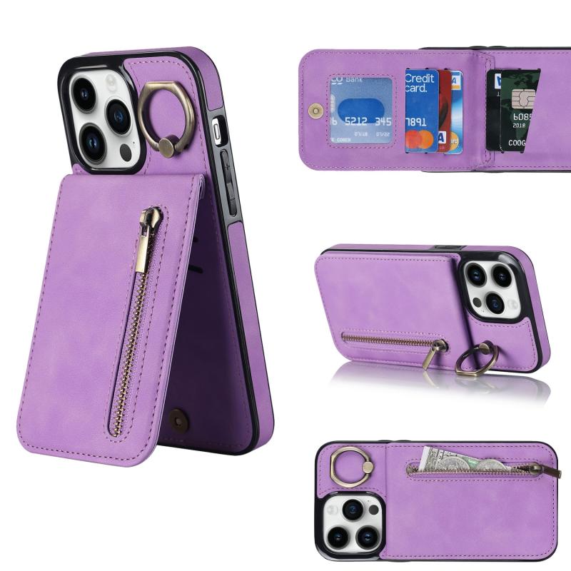 Για iPhone 12 Pro Max Θήκη με Δαχτυλίδι, Φερμουάρ & Θήκη Καρτών RFID (Μωβ)