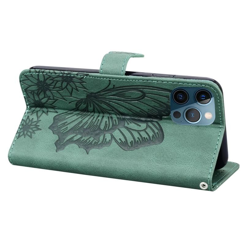 Θήκη δέρματος οριζόντιας αναδίπλωσης για iPhone 12 Pro Max με ανάγλυφο σχέδιο πεταλούδων σε ρετρό υφή, με βάση & υποδοχές καρτών & πορτοφόλι (Κόκκινο)