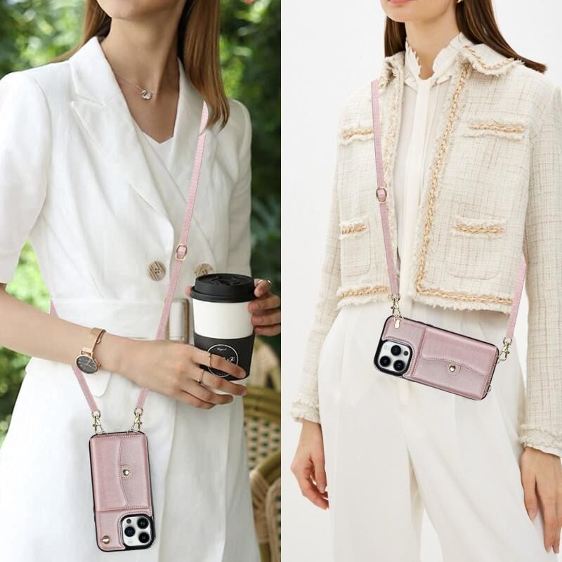 Θήκη κινητού για iPhone 12 Pro Max με υποδοχή κάρτας RFID και μακρύ λουρί (Μαύρο)