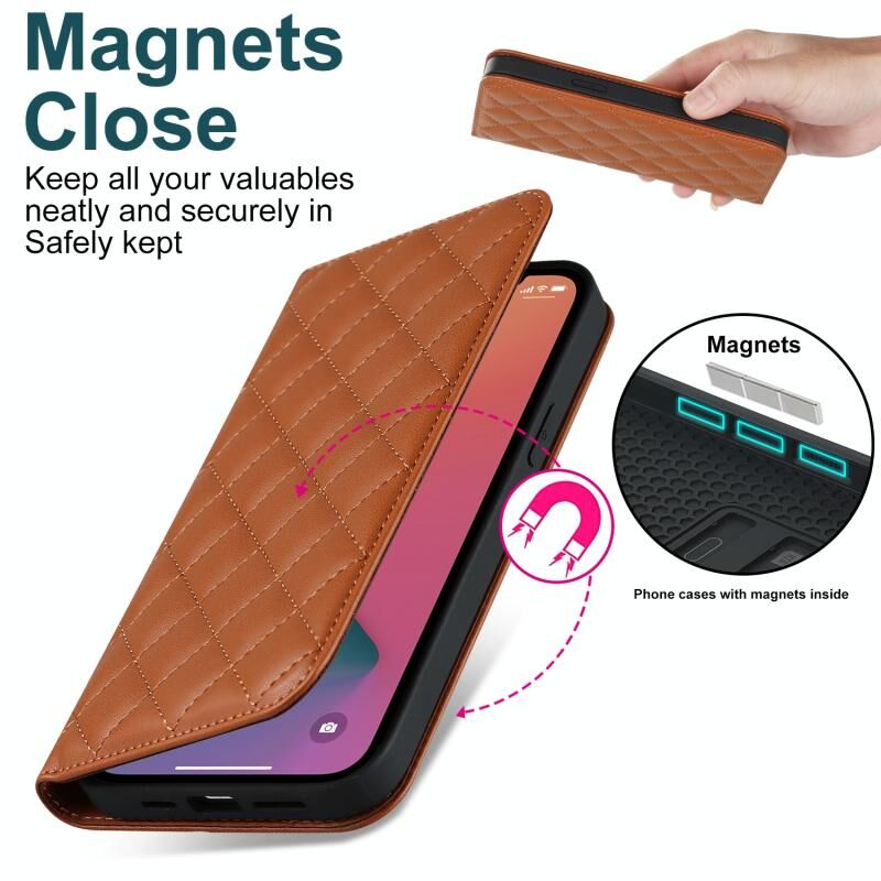 Θήκη τηλεφώνου από δέρμα με αντι-κλοπής RFID, MagSafe, σε σχήμα ρόμβου για iPhone 12 Pro Max (Λευκό)