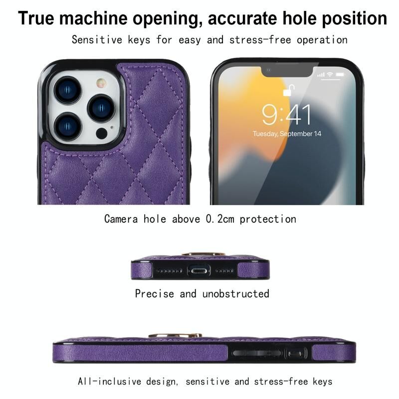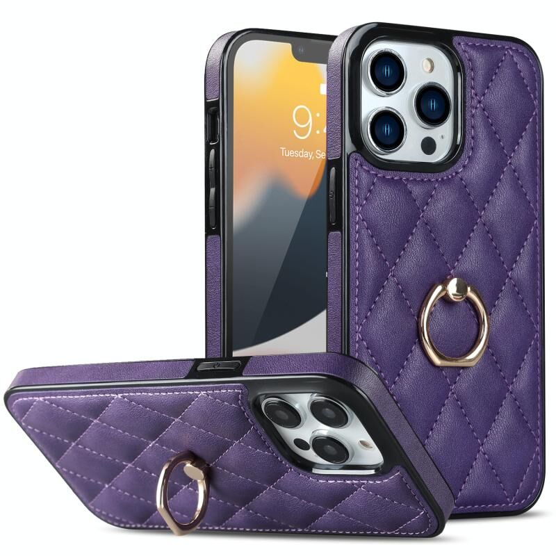 For iPhone 12 Pro Max Rhombic PU Leather Phone Case with Ring Holder(Purple)