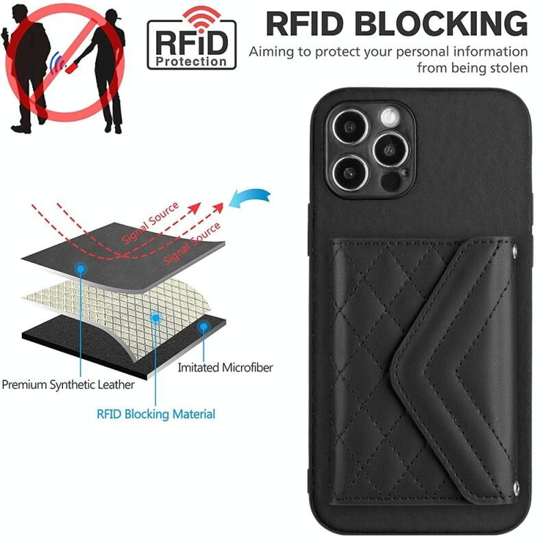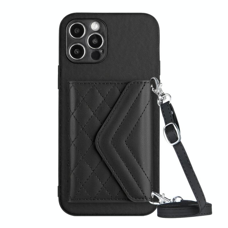 Θήκη κινητού τηλεφώνου RFID με υφή ρόμβου και μακρύ κορδόνι για iPhone 12 Pro Max (Πράσινο)
