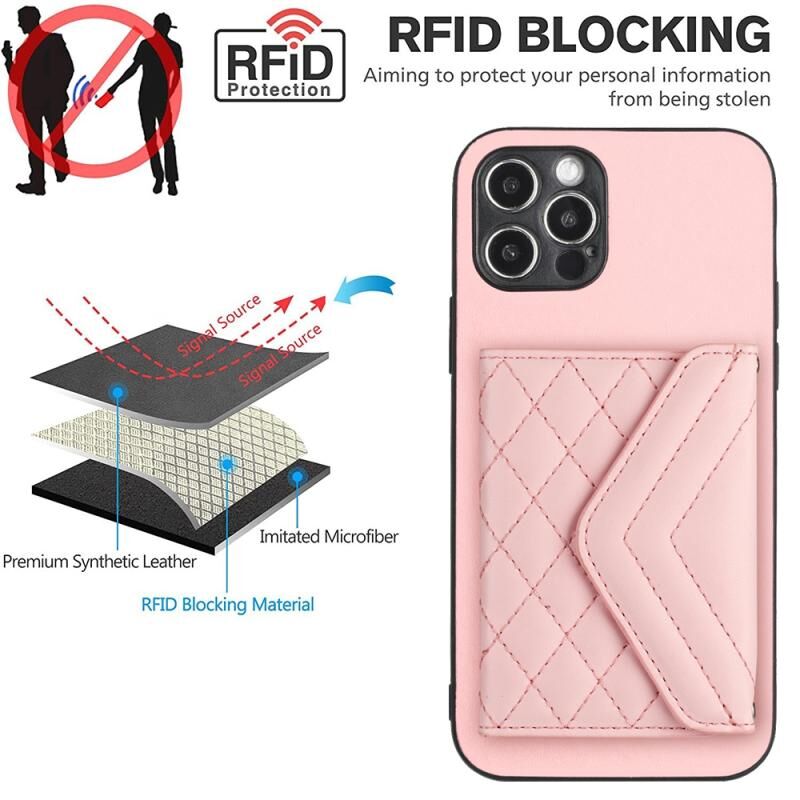 Θήκη κινητού τηλεφώνου RFID με υφή ρόμβου και μακρύ κορδόνι για iPhone 12 Pro Max (Πράσινο)