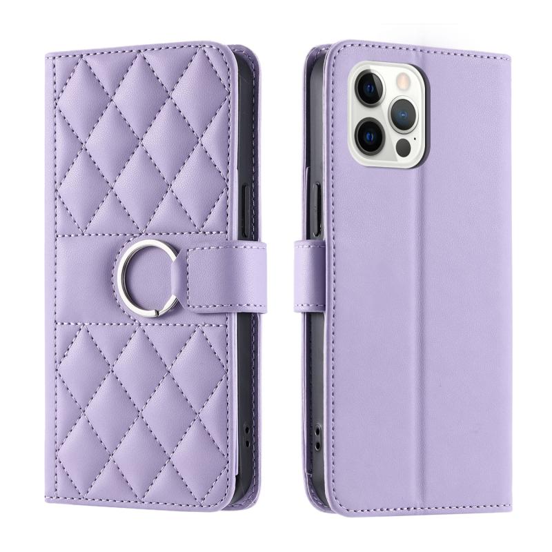 For iPhone 12 Pro Max Ring Buckle Rhombic Leather Phone Case(Purple)