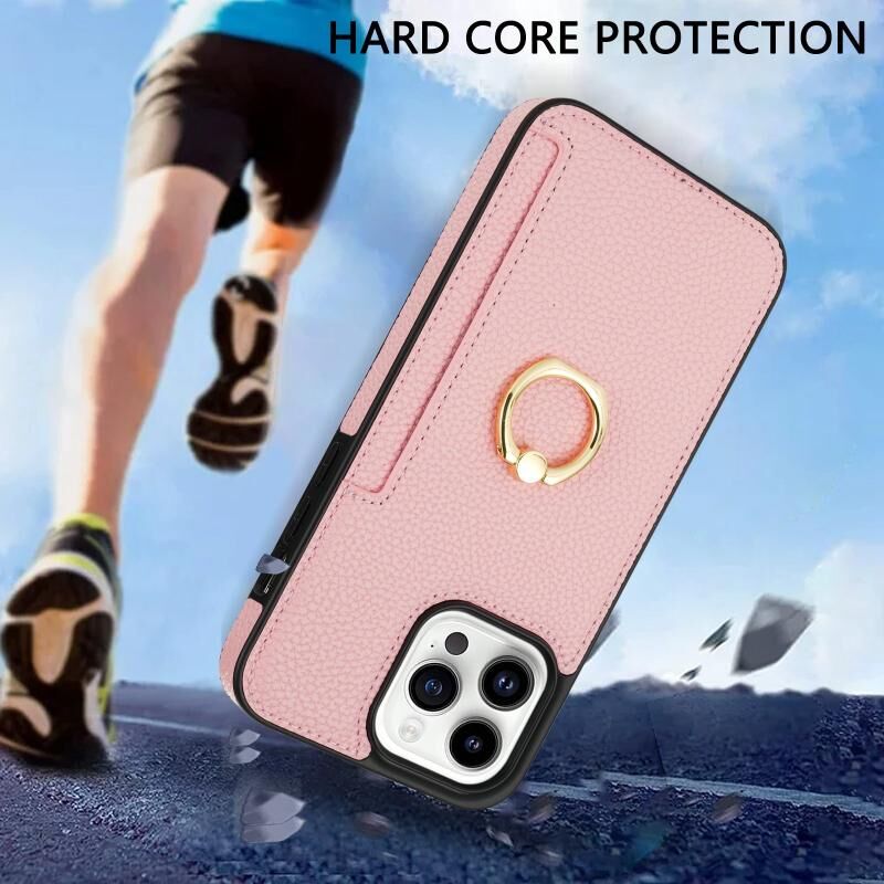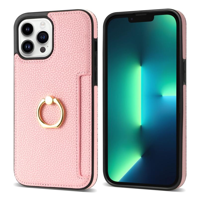 Για iPhone 12 Pro Max Θήκη με Δαχτυλίδι & Κάρτες, Δέρμα Litchi (Ροζ)