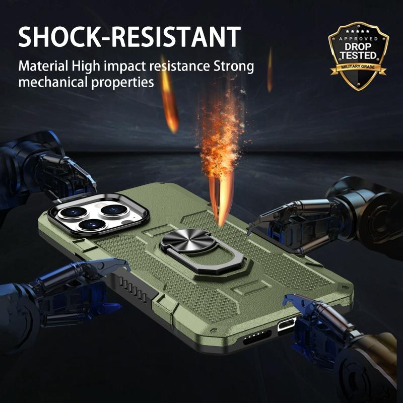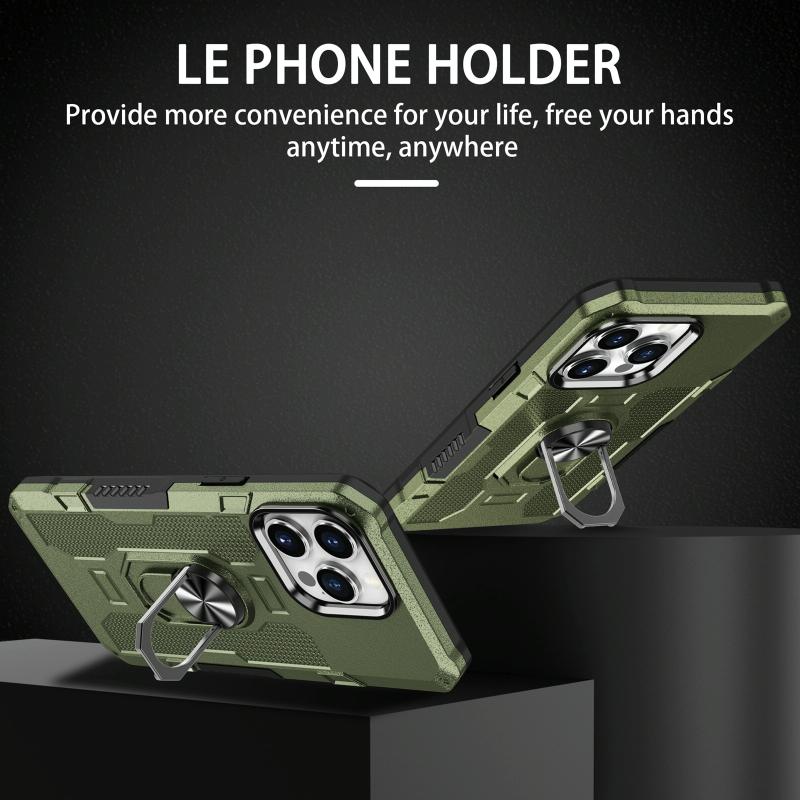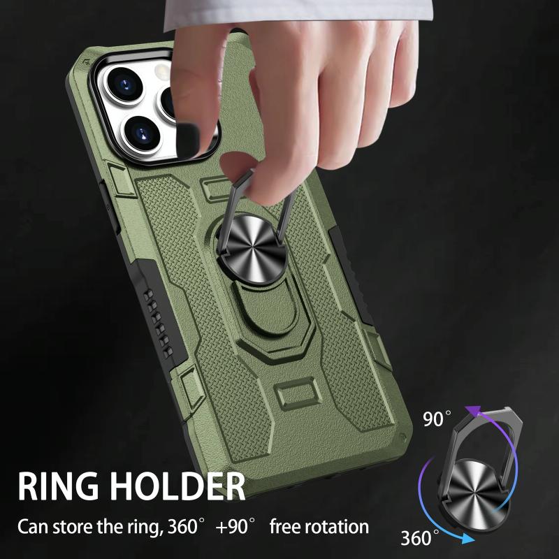 For iPhone 12 Pro Max Ring Holder Armor Hybrid Phone Case(Green)