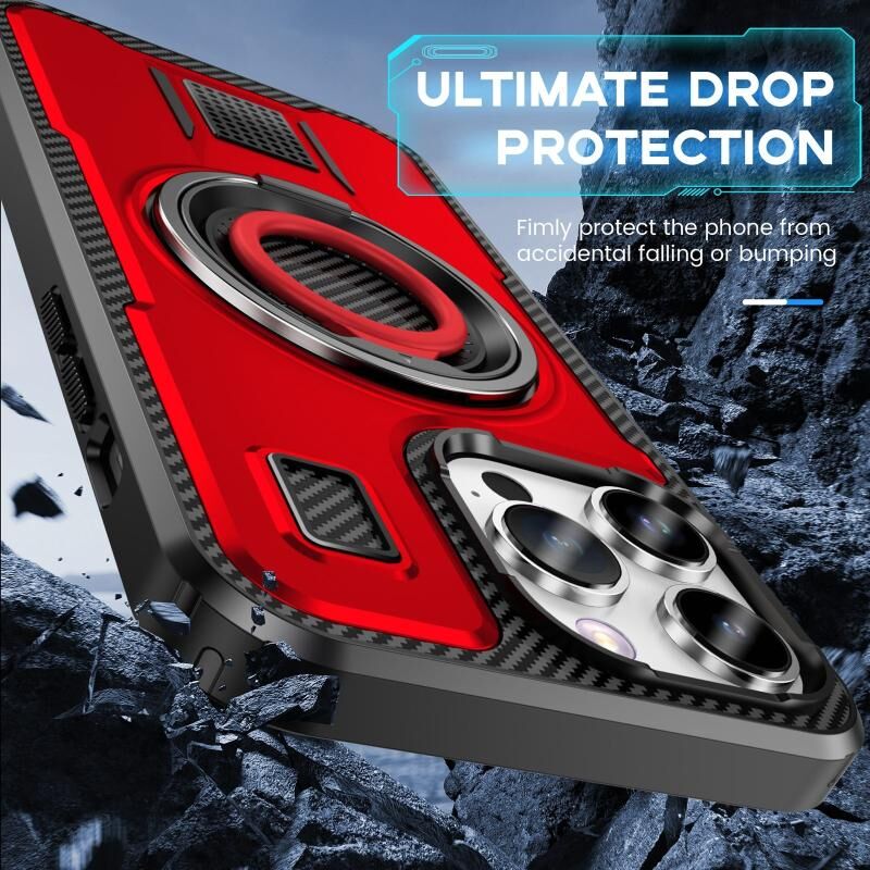 Θήκη τηλεφώνου για iPhone 12 Pro Max με δακτύλιο στήριξης, υβριδική από ανθρακονήματα PC και TPU (Κόκκινη)